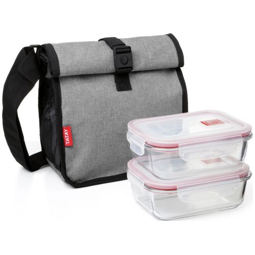 Roll & Go Glass: Bolsa térmica de poliéster, triple capa material aislante, con 2 herméticos cristal borosilicato de 0,64L con válvula, aptos horno/microondas.