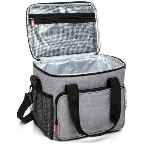 Capacidad 11L, perfecta para 24 latas o 12 botellas.: Comodas asas de a garre, con almohadilla, y cinta bandolera graduable y extraible, para un fácil transporte.
