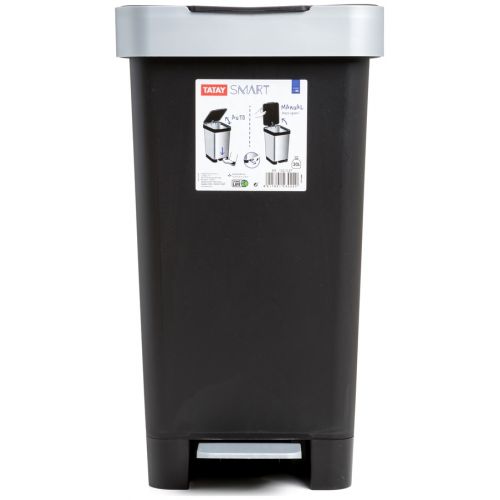 Cubo pedal SMART 25L: Fabricado en PP y libre de BpA, en color negro y marco y pedal gris metalizado