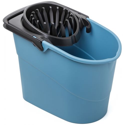 Cubo con escurridor, fabricado en plástico: Cubo ovalado con escurridor que permite escurrido por presión
