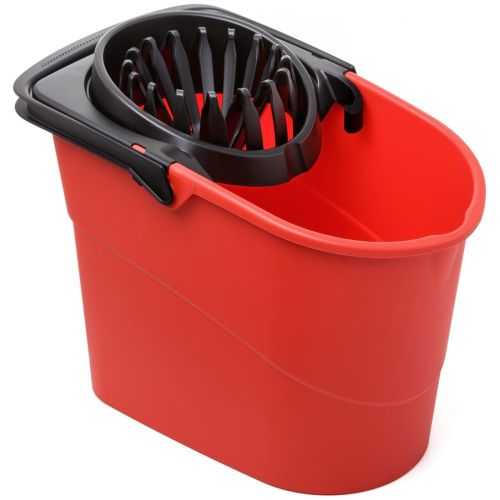 Cubo con escurridor, fabricado en plástico: Cubo ovalado con escurridor que permite escurrido por presión