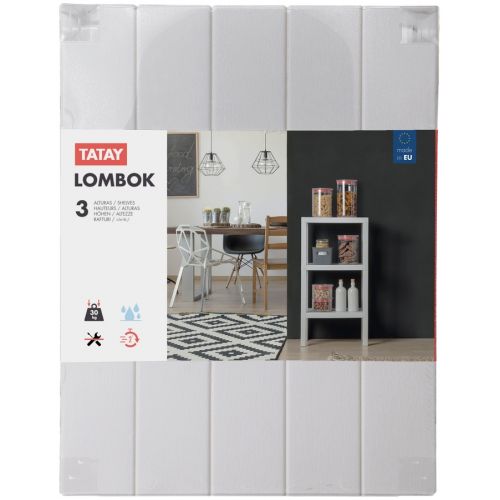 Estantería plástico: Estantería rectangular, de 3 niveles, fabricada en PP, color blanco, acabado efecto madera. Incorpora topes antideslizantes, y tapones embellecedores en la parte superior. Resistencia 30 kgs. Fácil montaje.
