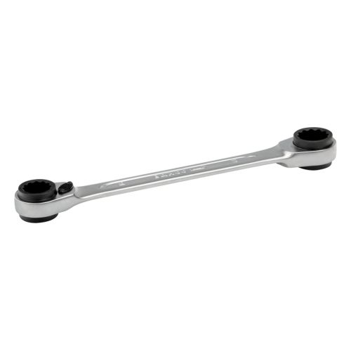 Llave doble de estrella plana a carraca de 4-7 mm con acabado cromado de 115 mm