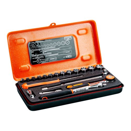 Juego de vasos con cuadradillo de 1/4" con perfil hexagonal métrico y carraca con cabeza redonda/mango articulado (20 piezas/maletín)| Referencia | Descripción | Ean | |