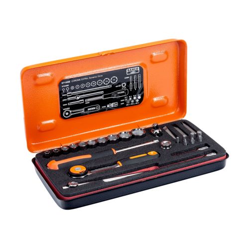 | 6715GE | Juego de vasos con cuadradillo de 1/4\" con perfil hexagonal métrico y carraca con cabeza redonda/destornillador portavasos (27 piezas/maletín) | 7314151831370 |