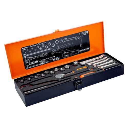 | 6720NM | Juego de vasos de 1/4\" con perfil hexagonal métrico y carraca con cabeza tipo pera/juego llaves (33 piezas/maletín) | 7314151088262 |