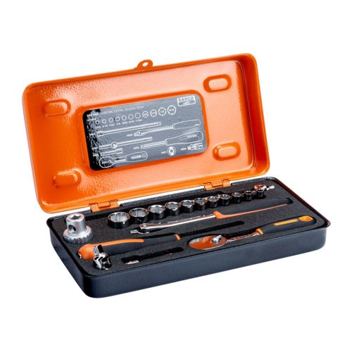 | 6821NZ | Juego de vasos con cuadradillo de 1/4\" y perfil hexagonal imperial y carraca con cabeza tipo pera/mangos articulado (19 piezas/maletín) | 7314151089269 |