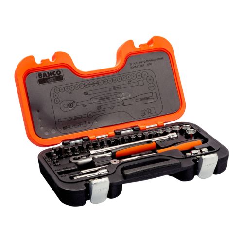 Juego de vasos de 1/4\" con perfil hexagonal métrico y carraca/llaves de vaso (53 piezas/maletín)