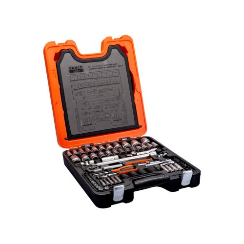 Llave combinada con cuadrado de 1/4\" y 1/2\" y juego de vasos (92 piezas/maletín)