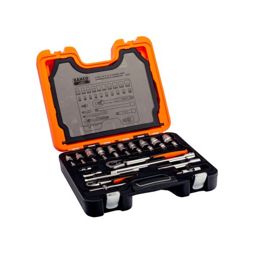 | S410 | Juego de vasos con cuadrado de 1/4\" y 1/2\", perfil hexagonal métrico y juego de llaves combinadas (41 piezas/maletín) | 7314153019370 |