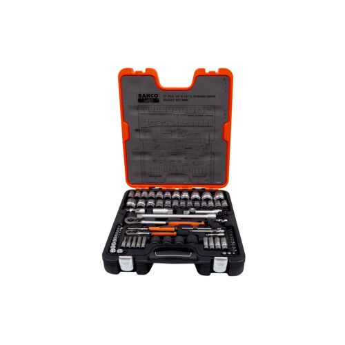 Llave con cuadrado de 1/4\" y 1/2\" y juego de vasos (77 piezas/maletín)