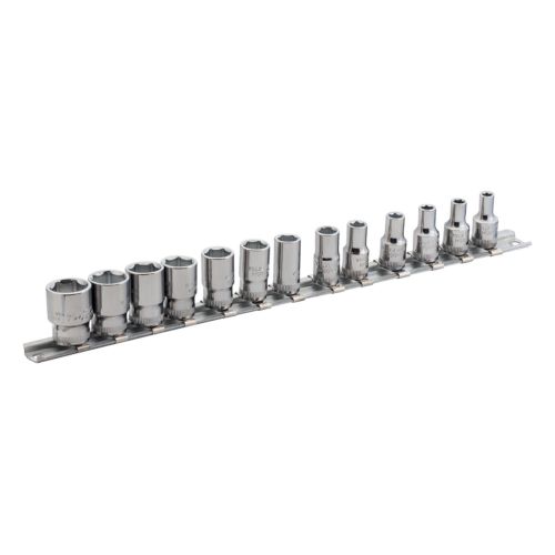 Juego de vasos con cuadradillo de 1/4\" y perfil hexagonal métrico (13 piezas/raíl)