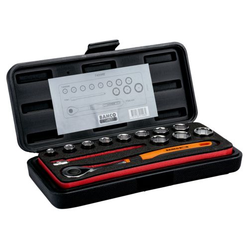 | 7420RE | Juego de vasos con cuadradillo de 3/8\" con perfil hexagonal métrico y carraca con cabeza redonda (13 piezas/maletín) | 7314153014962 |