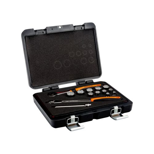 | A7440DZE | Juego de vasos con cuadradillo de 3/8\" con perfil bi-hexagonal imperial y carraca con cabeza redonda (14 unidades/maletín) | 7314153014993 |