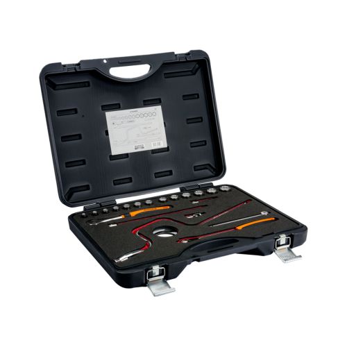 | A7535DZE | Juego de vasos con cuadradillo de 3/8\" con perfil bi-hexagonal imperial y carraca con cabeza redonda/mango articulado (20 unidades/maletín) | 7314153015013 |