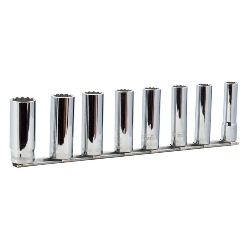 Juego de vasos serie larga con cuadradillo de 3/8\" y perfil bi-hexagonal métrico (8 piezas/raíl)