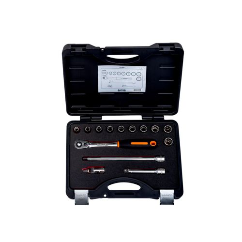 Juego de vasos con cuadradillo de 1/2" con perfil bi-hexagonal métrico y carraca con cabeza delgada (14 unidades/maletín)| Referencia | Descripción | Ean | |