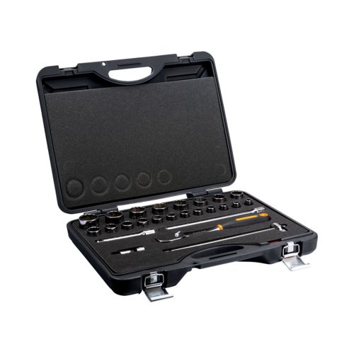 Juego de vasos con cuadradillo de 1/2" con perfil bi-hexagonal métrico y carraca reversible/articulación universal (25 unidades/maletín)| Referencia | Descripción | Ean | |