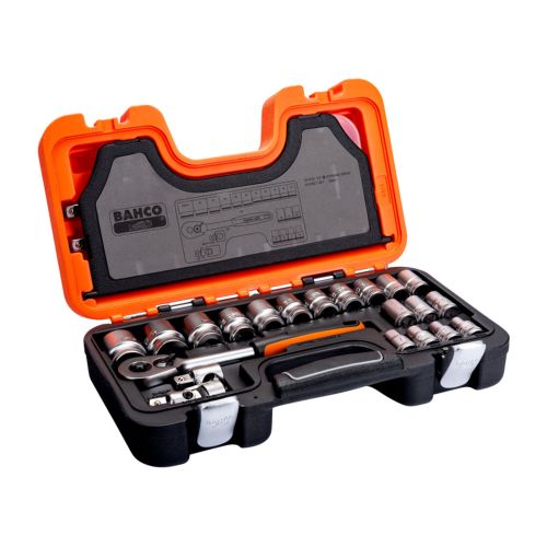 Juego de vasos de 1/2\" con perfil hexagonal métrico y carraca (24 piezas/maletín)