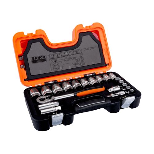 Juego de vasos de 1/2\" con perfil hexagonal imperial y carraca (23 piezas/maletín)