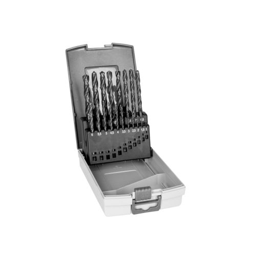 Caja de plástico con 19 brocas de 1 a 10 mm x 0,5 mm