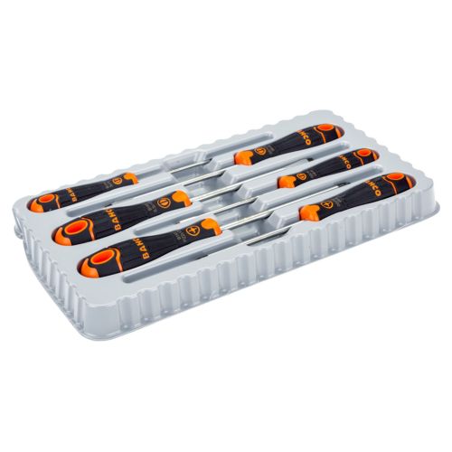 Juego de 6 destornilladores para ranurados y Pozidriv BahcoFit con agarre de goma