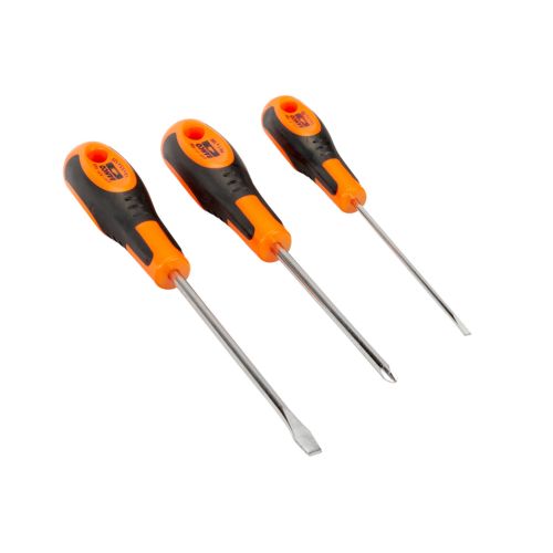 Juego de destornilladores ranurados/Phillips con mango de goma (3 piezas)