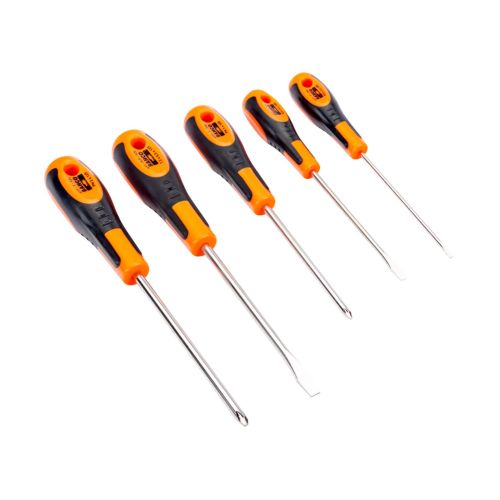 Juego de destornilladores ranurados/Phillips con mango de goma (5 piezas)