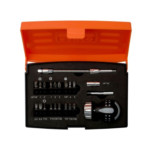 Juego de destornillador a carraca con portapuntas de 1/4\" (22 piezas)