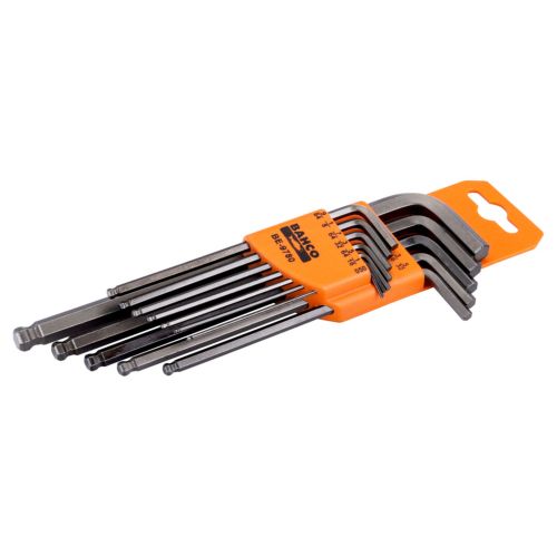 Llaves hexagonales con bola en la garra larga. Se introducen fácilmente en la cabeza del tornillo desde varios ángulos. Para trabajar de forma más eficiente y ahorrar tiempo.