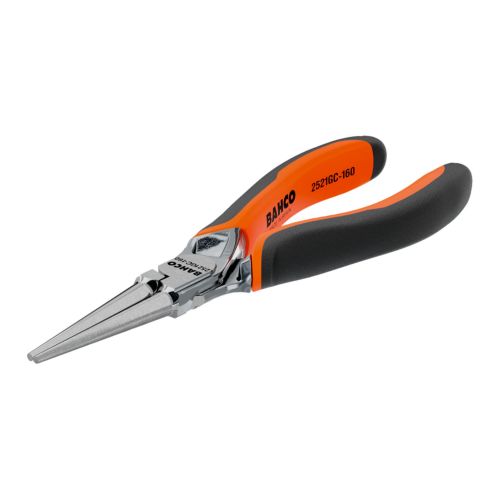 Alicates de boca redonda ERGO™ con mangos bi-componentes y acabado cromado (160 mm)