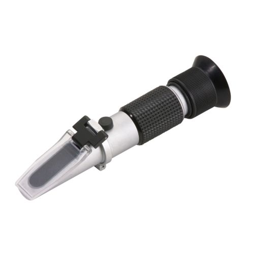 Refractómetro que mide el umbral de congelación del etilenglicol o propilenglicol en un sistema de refrigeración o del líquido de limpieza, así como la densidad del electrólito en la batería y la concentración de urea en el AdBlue