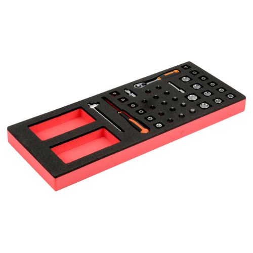 Juego de carraca de cabeza tipo pera y vasos de 1/4\" en bandeja de foam 1/3 Fit&Go (37 piezas)