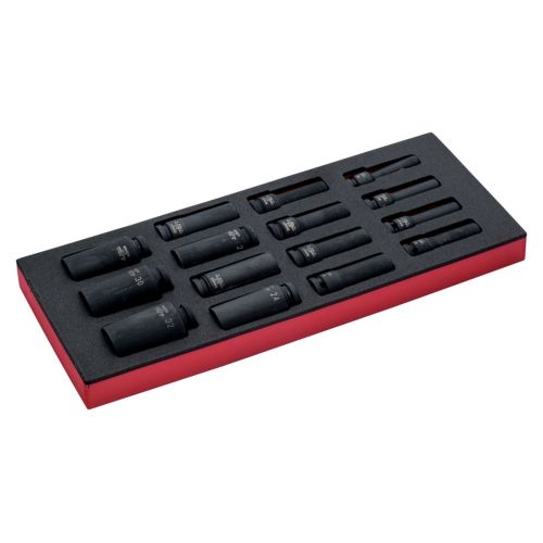 Juego de vasos de impacto de serie larga de 1/2\" en bandeja de foam 1/3 Fit&Go (15 piezas)