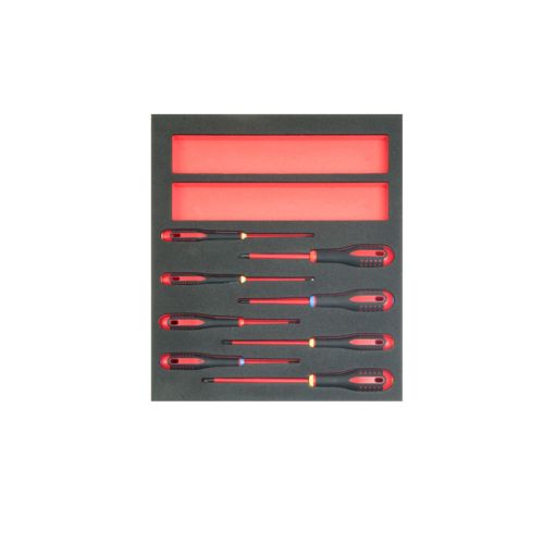 Juego de destornilladores ranurados, Phillips y Pozidriv en bandeja de foam 2/3 Fit&Go (8 piezas)