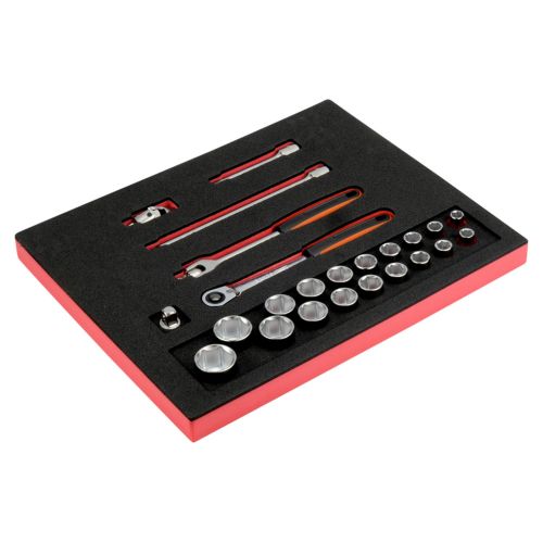 Juego de carraca de cabeza tipo pera y vasos de 1/2\" en bandeja de foam 2/3 Fit&Go (24 piezas)