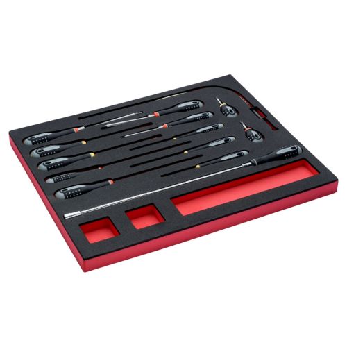 Juego de destornilladores para ranurados y Phillips en bandeja de foam 3/3 Fit&Go, 14 unidades