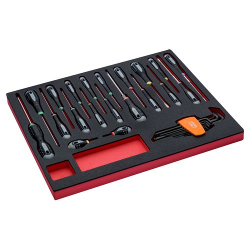 Juego de llaves acodadas y destornilladores en bandeja de foam 3/3 Fit&Go, 29 unidades
