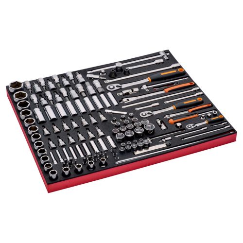 Juego de carraca de cabeza tipo pera y vasos de 1/4" + 1/2" + 3/8" en bandeja de foam 3/3 Fit&Go (138 piezas)| Referencia | Descripción | Ean | |