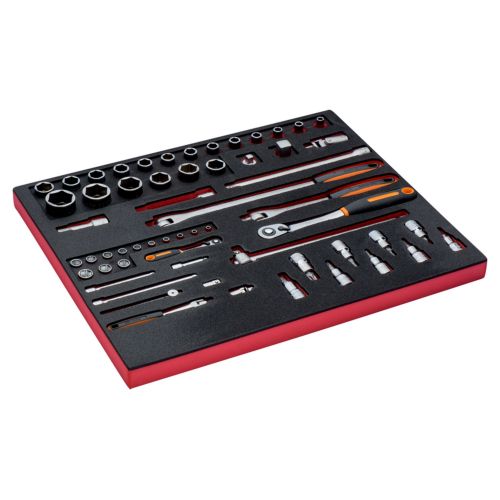 Juego de carraca con cabeza redonda y vasos en bandeja de foam 3/3 Fit&Go, 59 unidades
