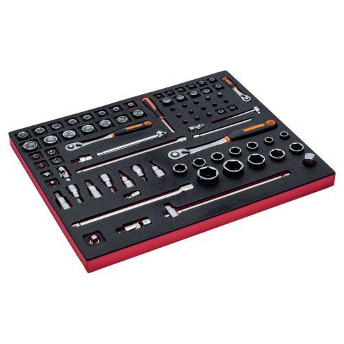 Juego de carraca con cabeza tipo pera/redonda y vasos de 1/4" + 1/2" + 3/8" en bandeja de foam 3/3 Fit&Go, 83 unidades| Referencia | Descripción | Ean | |