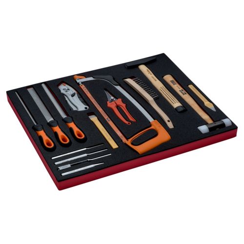 Composición de herramientas de afilado y golpeo con arco de sierra en bandeja de foam 3/3 Fit&Go, 15 unidades| Referencia | Descripción | Ean | |