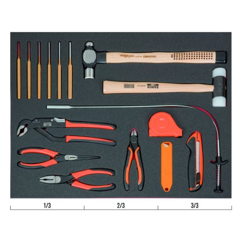 Composición de herramientas de corte y golpeo en bandeja de foam 3/3 Fit&Go (11 piezas)