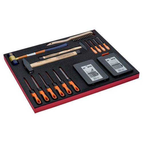 Juego de herramientas de golpeo y limas en bandeja de foam 3/3 Fit&Go, 24 unidades