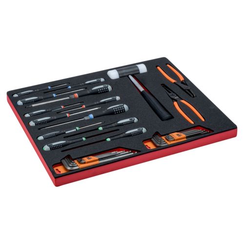 Juego de destornilladores y llaves acodadas en bandeja de foam 3/3 Fit&Go, 38 unidades