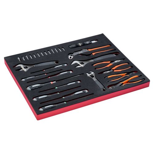 Juego de alicates, llaves y destornilladores en bandeja de foam 3/3 Fit&Go (28 piezas)