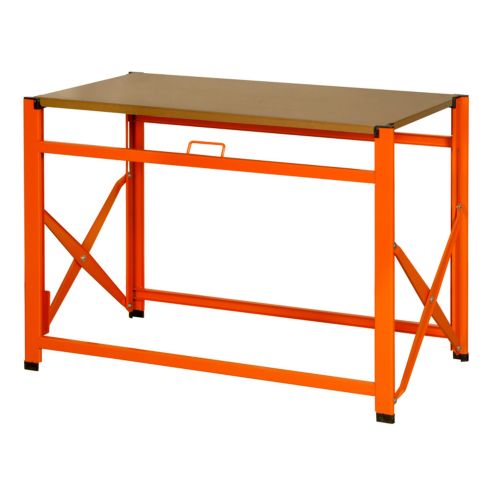 Banco de trabajo naranja portátil con encimera galvanizada y DM de 1200 mm x 510 mm x 840 mm
