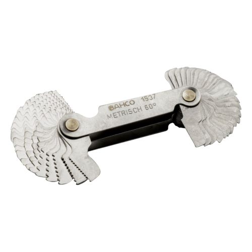 Galga de roscas con medidas métricas, ángulo de 60° y sistema Whitworth de 55º (30 mm)
