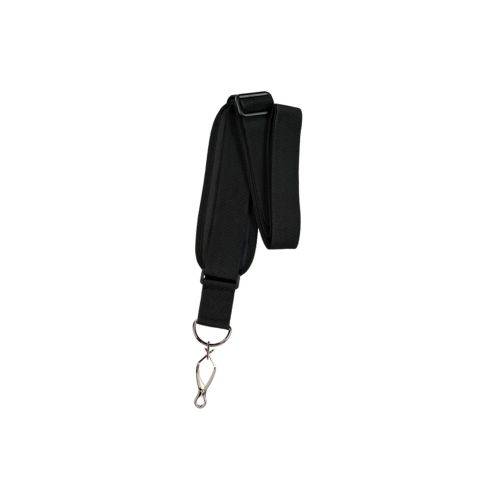 Synthetic ribbon with a shoulder pad and a metal snap hook