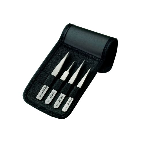 Juego de pinzas anti-magnéticas de titanio (4 piezas/estuche)